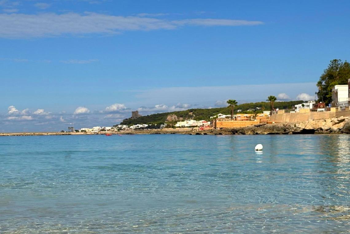 È ottobre, il tempo sta per cambiare, un ultimo bagno prima che arrivi il diluvio, prima che si affacci, indesiderato l’autunno. Santa Maria al Bagno, una delle marine di Nardò, piccola insenatura sabbiosa tra le rocce basse, più a nord Santa Caterina e a sud le Quattro Colonne, le auto scorrono sulla strada, i guidatori abituali immuni alla bellezza dei luoghi non si accorgono del turista affascinato, quasi rapito dalla luce mattutina. I cavalieri teutonici sono ricordi lontani, dei passaggi e della storia e dei saccheggi resta Carlo V e la sua visione, le ville in pineta segno di una ritrovata allegria economica. Lui, il turista guarda acqua e cielo, azzurri e verdi che giocano a rincorrersi come le nuvole che non minacciano pioggia imminente ma segnalano ancora che tutto è mutevole, che può ancora sopraggiungere un temporale.